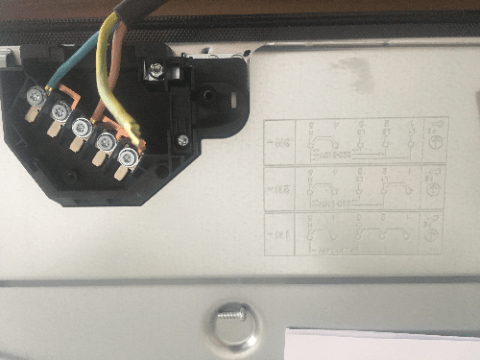 De mon côté j'ai 3 fils un marron pour la phase, un bleu pour le neutre et un vert et jaune pour la terre.. Bien repérer les ponts* placés sur le côté si vous en avez besoin. On utilise un câble souple 3 conducteurs de 6 mm². Je n'y connais rien en électricité (hormis poser une prise murale etc.).. Or il n'y en a pas comme mon ancienne.